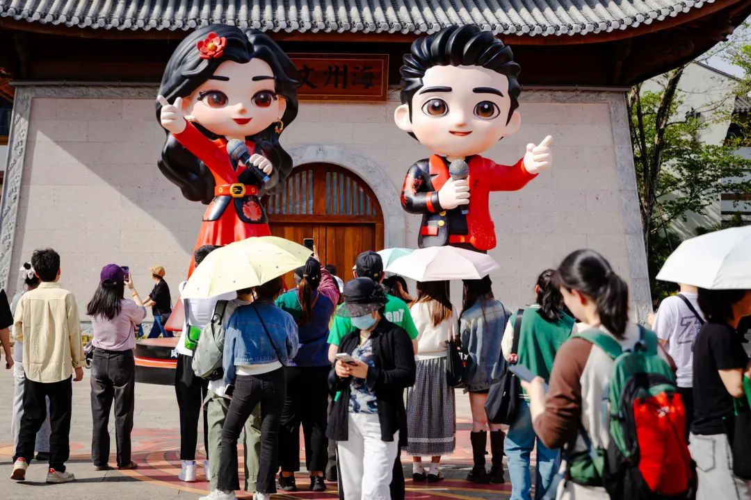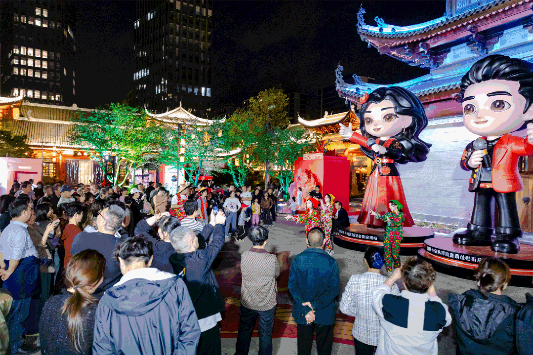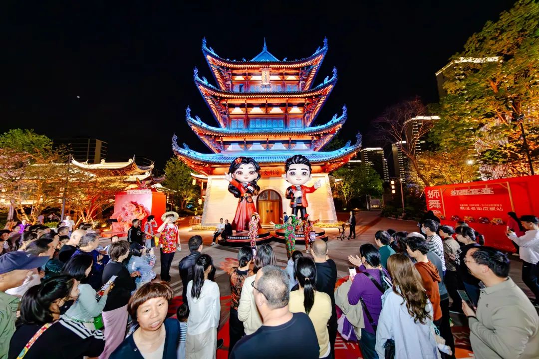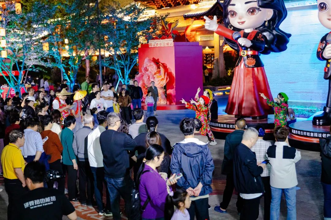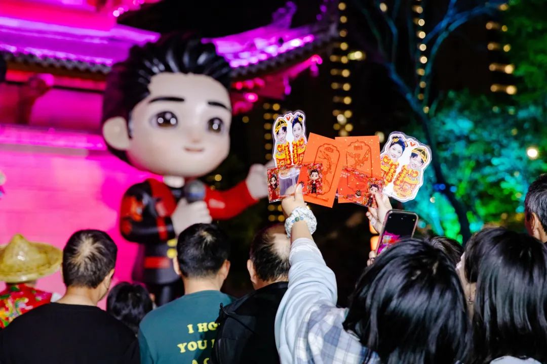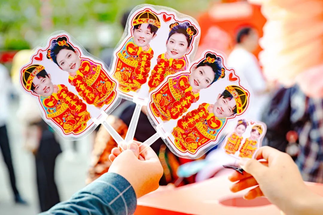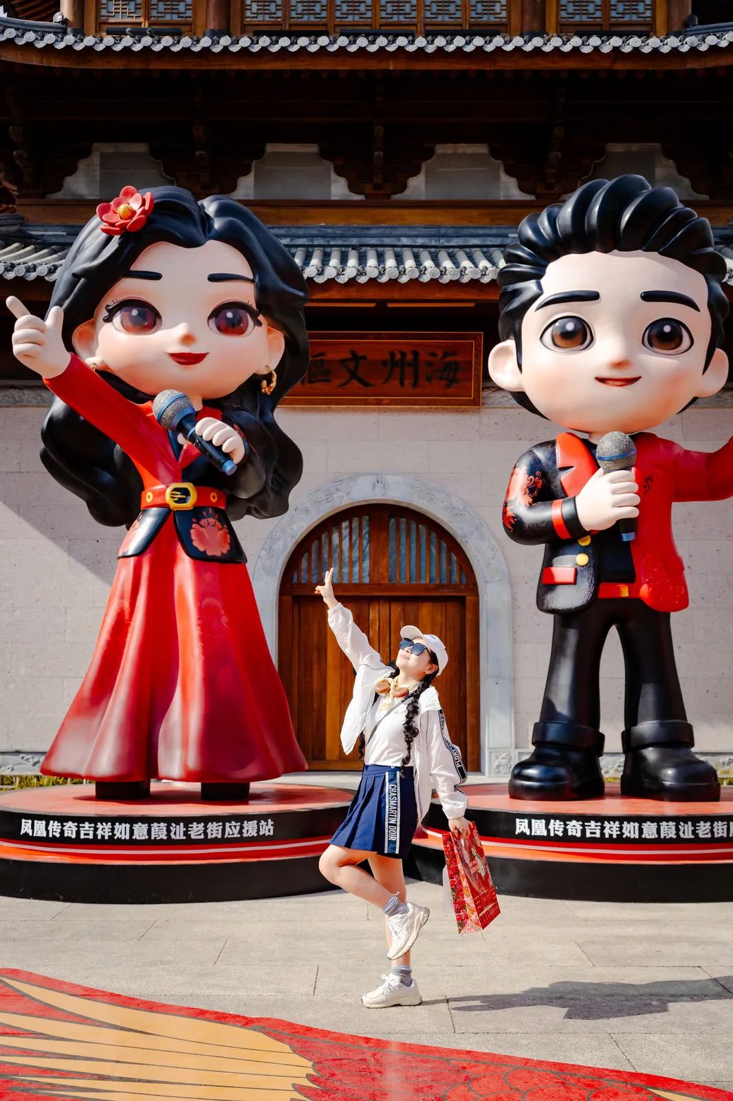 足足6m高超大凤凰传奇Q版公仔成了葭沚老街的顶流明星,超可爱的玲花曾毅举着麦克风“唱”得正嗨,粉丝们近距离感受偶像的魅力,排起长队打卡合影拍得也嗨。各种创意打卡pose层出不穷,这全国独一份的快乐还得是葭沚老街会~