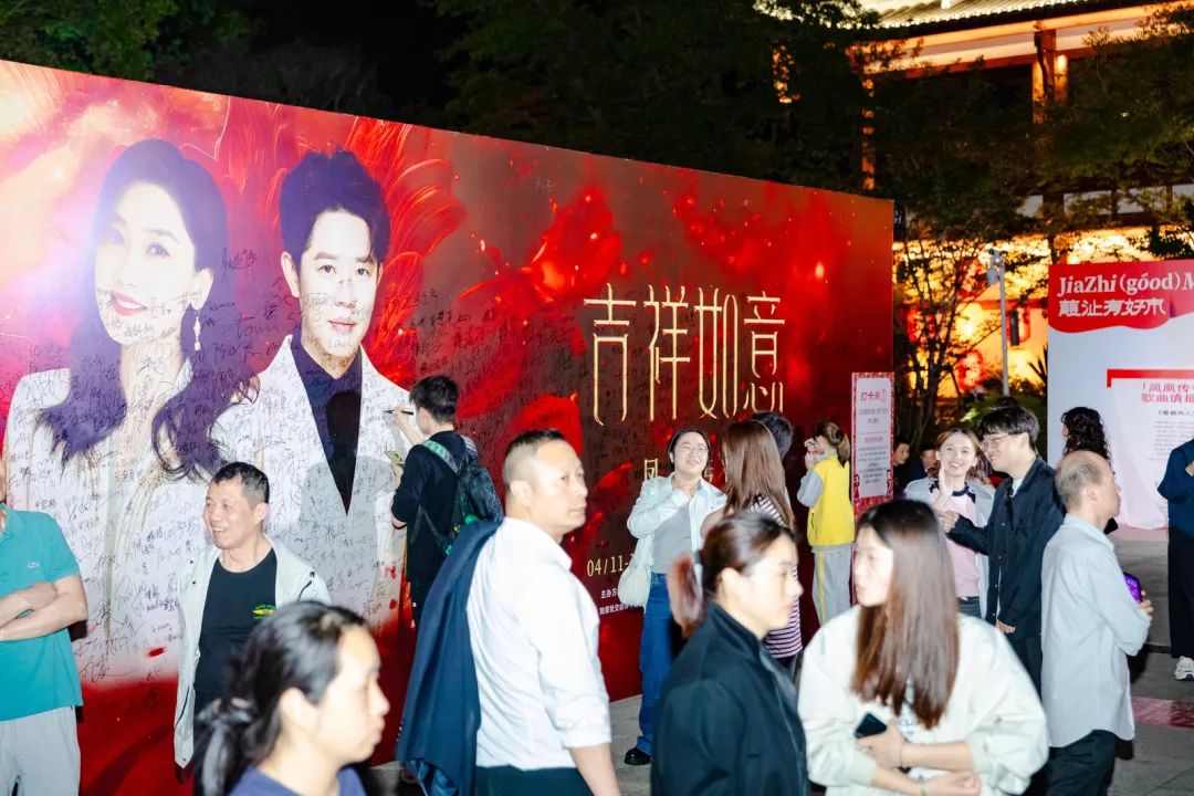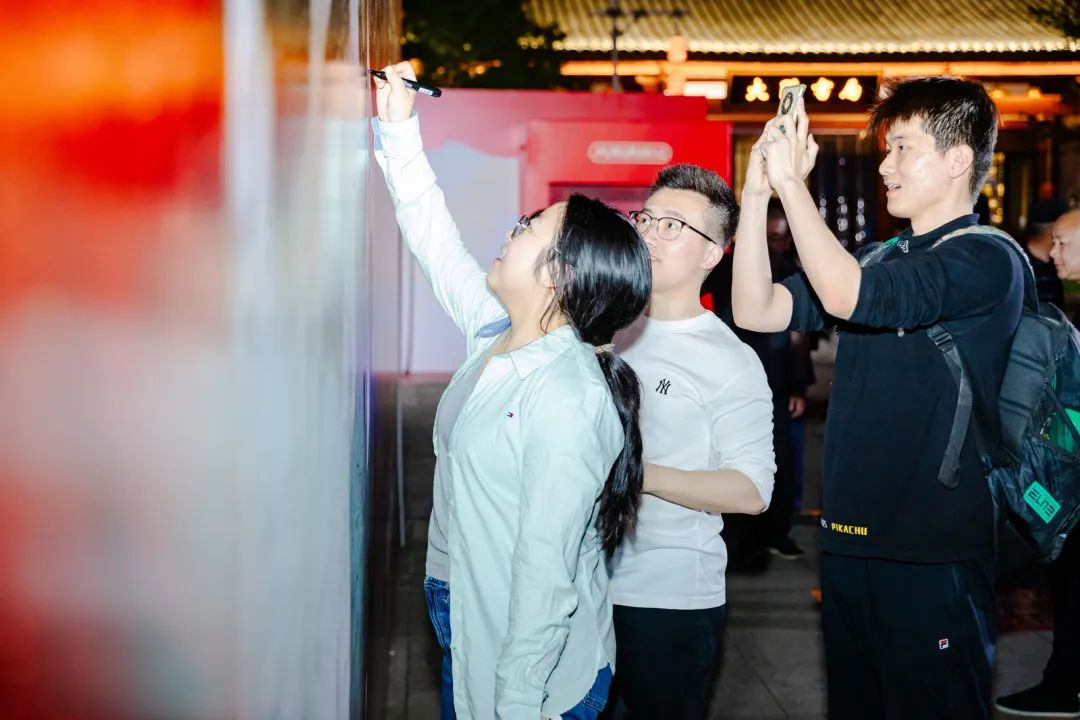 硕大的签到墙,被粉丝的签名挤得满满当当;玩完套圈再大玩歌词接龙,真爱粉大声唱出热爱直接炸场;凤凰传奇印刷版画、祝福话语书写则是另一种快乐,安静下来亲手写下真心话,此刻只剩纯粹的共鸣;近距离接触偶像立牌合影打卡,免费周边物料到手!