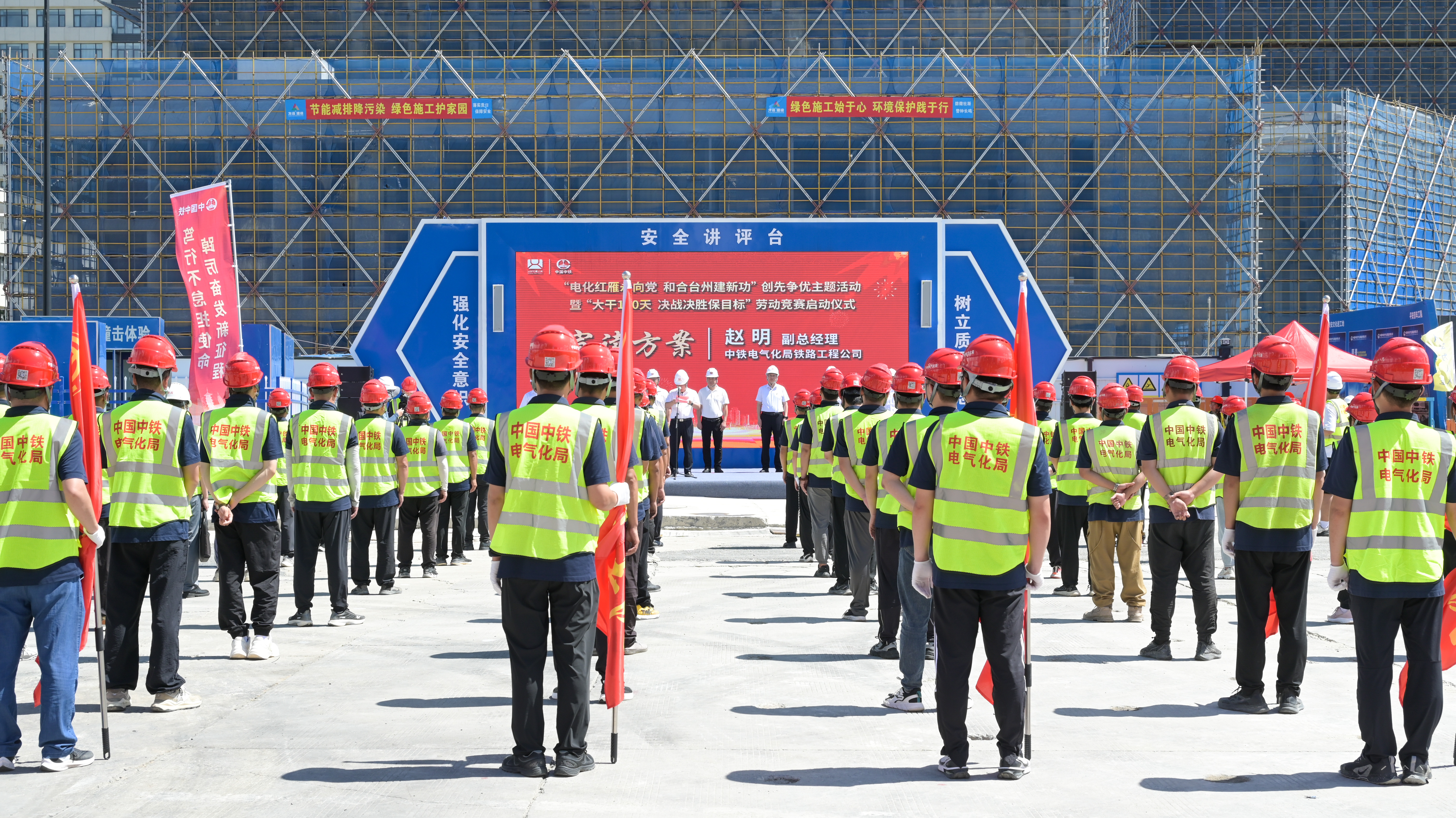 “铁军列阵,党旗高扬!电化先锋,锐不可当……”7月1日上午,台州市域铁路S2线(以下简称“S2线”)土建5标机东路施工现场党旗飘扬,誓言阵阵。“电化红雁永向党 和合台州建新功”创先争优主题活动暨“大干180天决战决胜保目标”劳动竞赛正式启动。