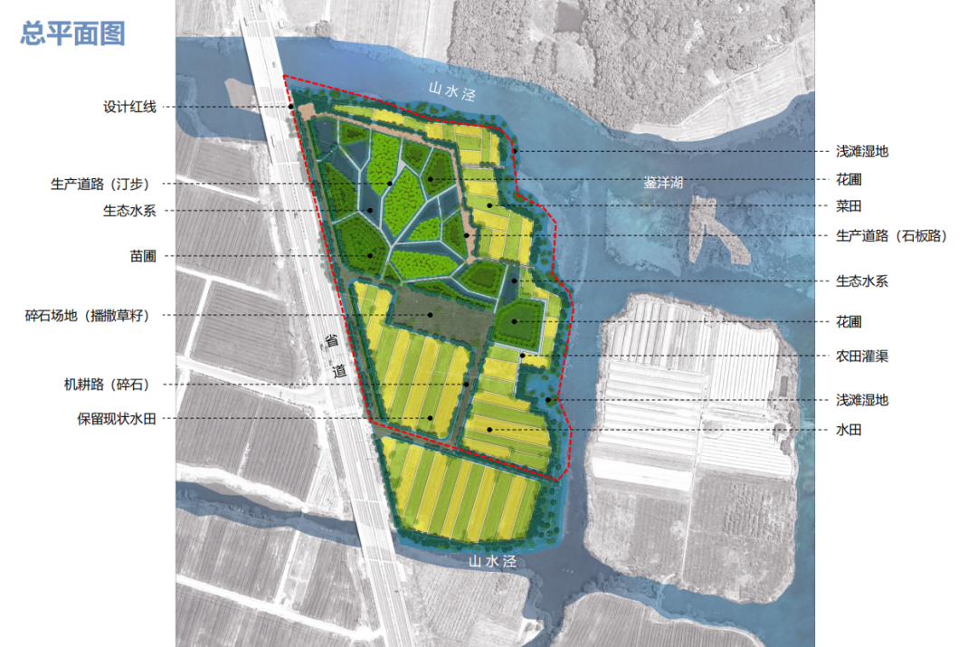 该项目位于 鉴洋湖湿地公园西片区 (王家岙村附近) 紧邻204省道院桥支线 是湿地公园西片区重要的门户区 实施面积4.15公顷