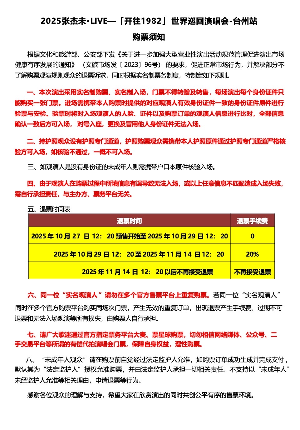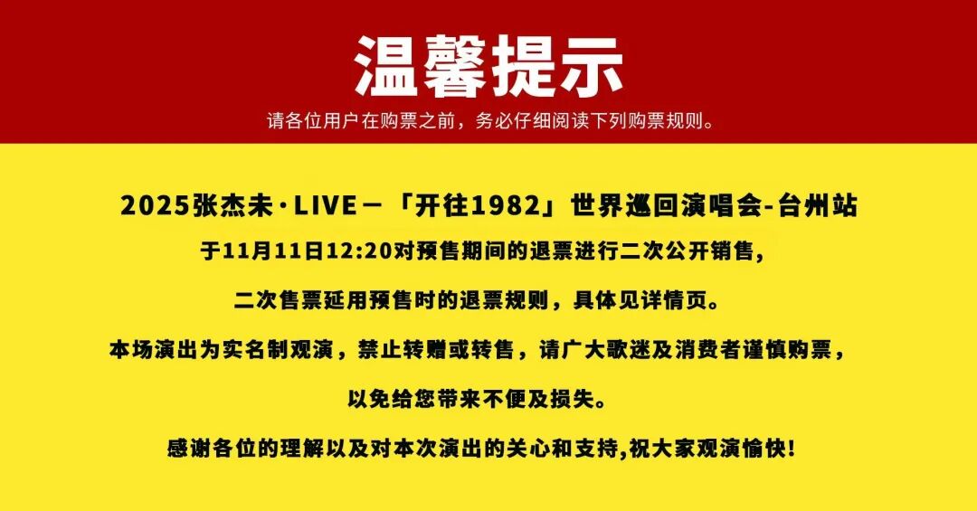 此外,台州公安紧急提醒:建议广大歌迷通过大麦、票星球等官方指定票务平台购票,切勿轻信网络媒体、公众号、二手交易平台上的“有偿代拍”服务,避免个人权益受损,做到理性购票、安全观演。